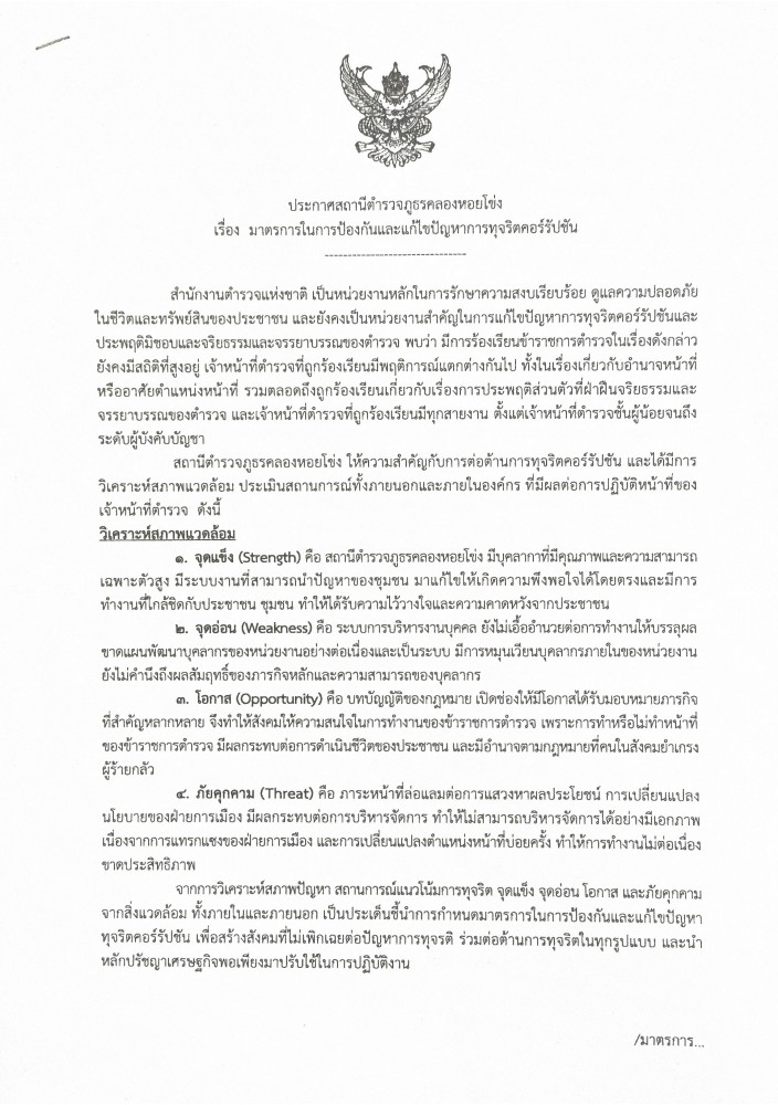 O24 มาตรการการยกระดับคุณธรรมและความโปร่งใสภายในหน่วยงาน